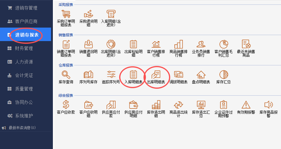1.进销存报表查询相关,比如入库明细表、出库明细表等