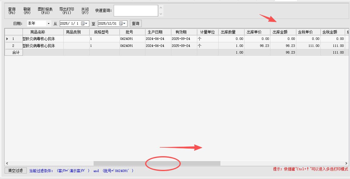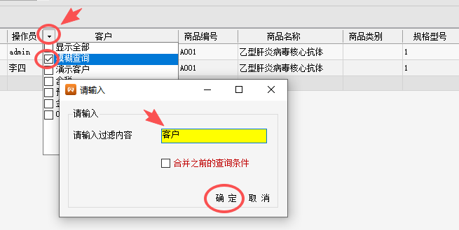 3.使用列表“模糊查询”,进一步筛选客户、商品或批号