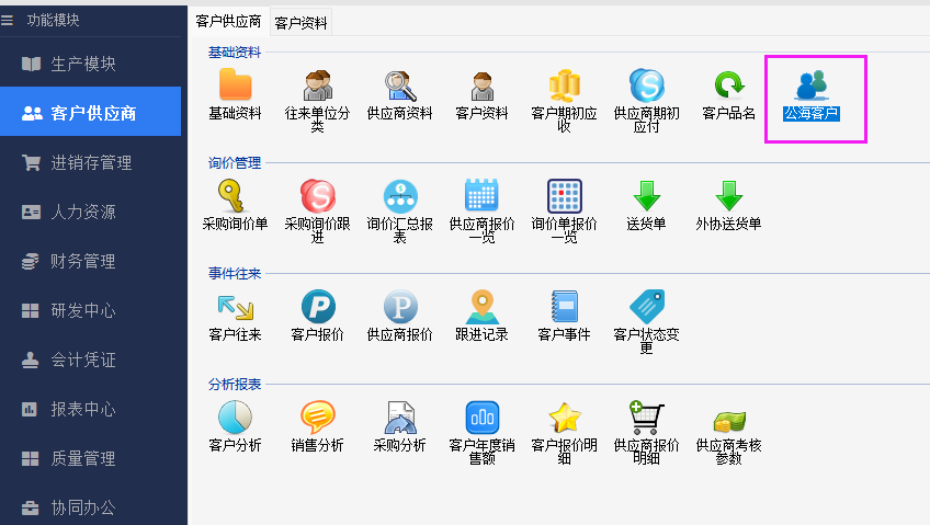 注意:【公海客户】与【客户资料】【供应商资料】共同关联一家公司,若新增某家公司时提示重复,需要注意检查这三个模块及它们对应的回收站。