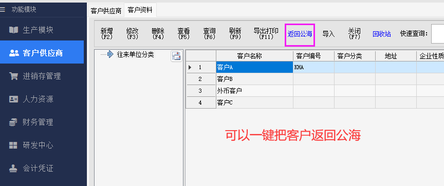 客户资料里的客户,若不需要跟进,可以一键返回公海。