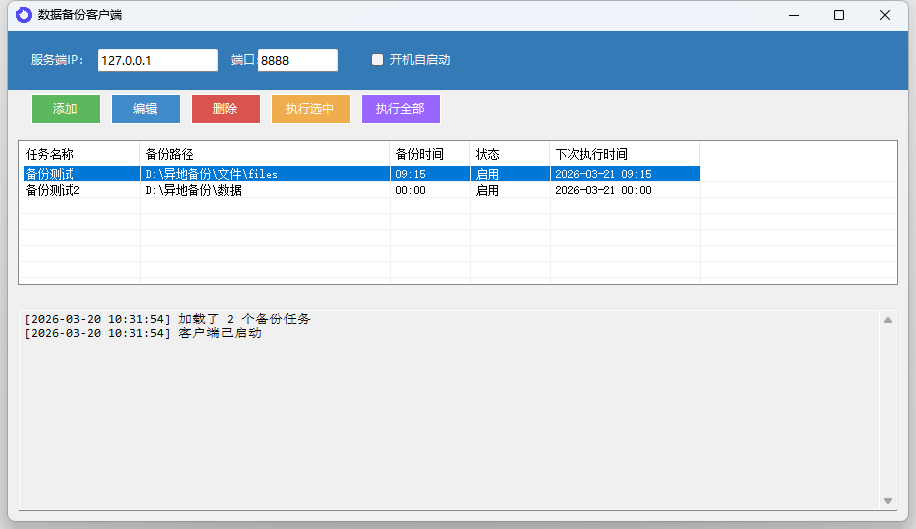 4.执行选中,可以在自动执行外,单独执行某个备份任务